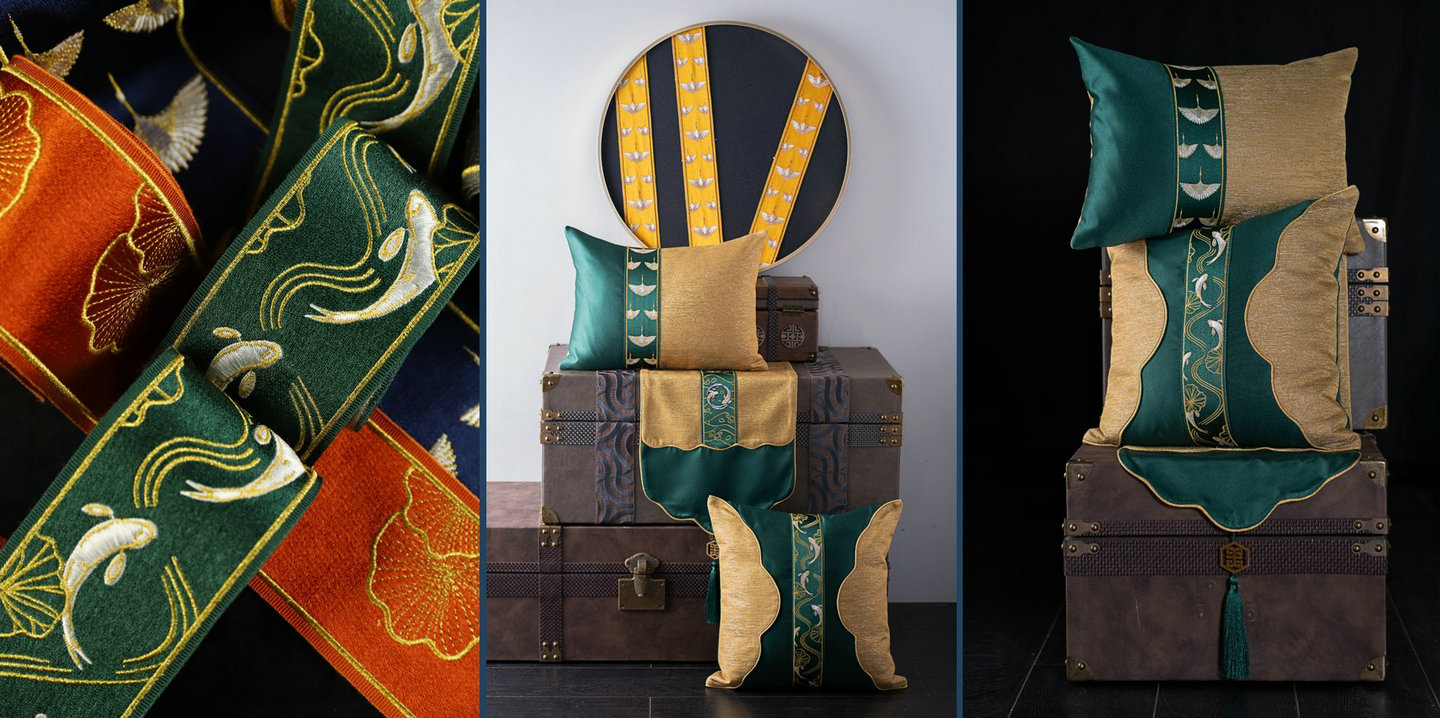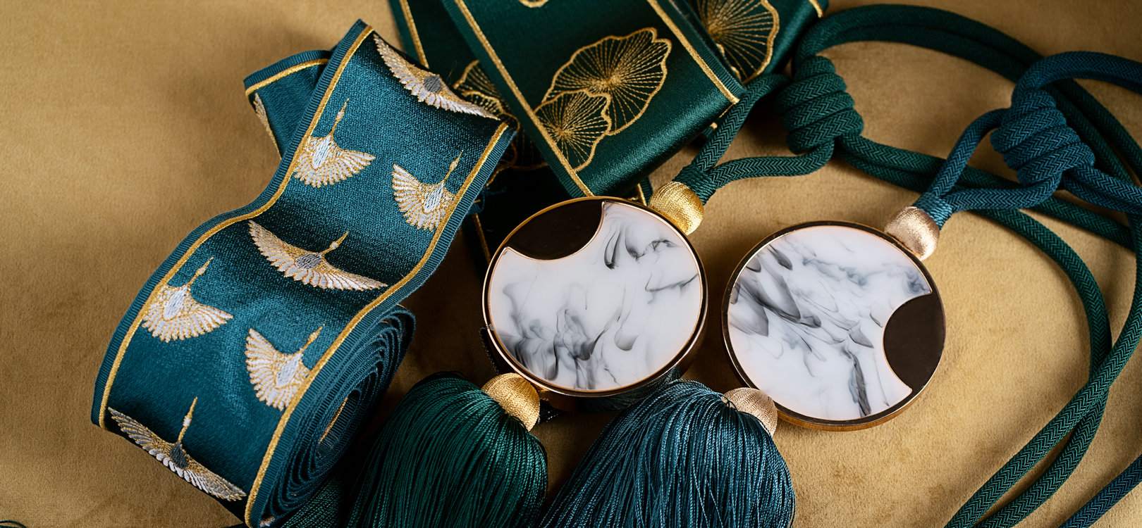 鎏金閣系列產(chǎn)品將傳統(tǒng)元素與摩登時尚的新設計相融合,以緞紋底帶呈現(xiàn)華貴光感,展示新中式的時尚與富麗堂皇。